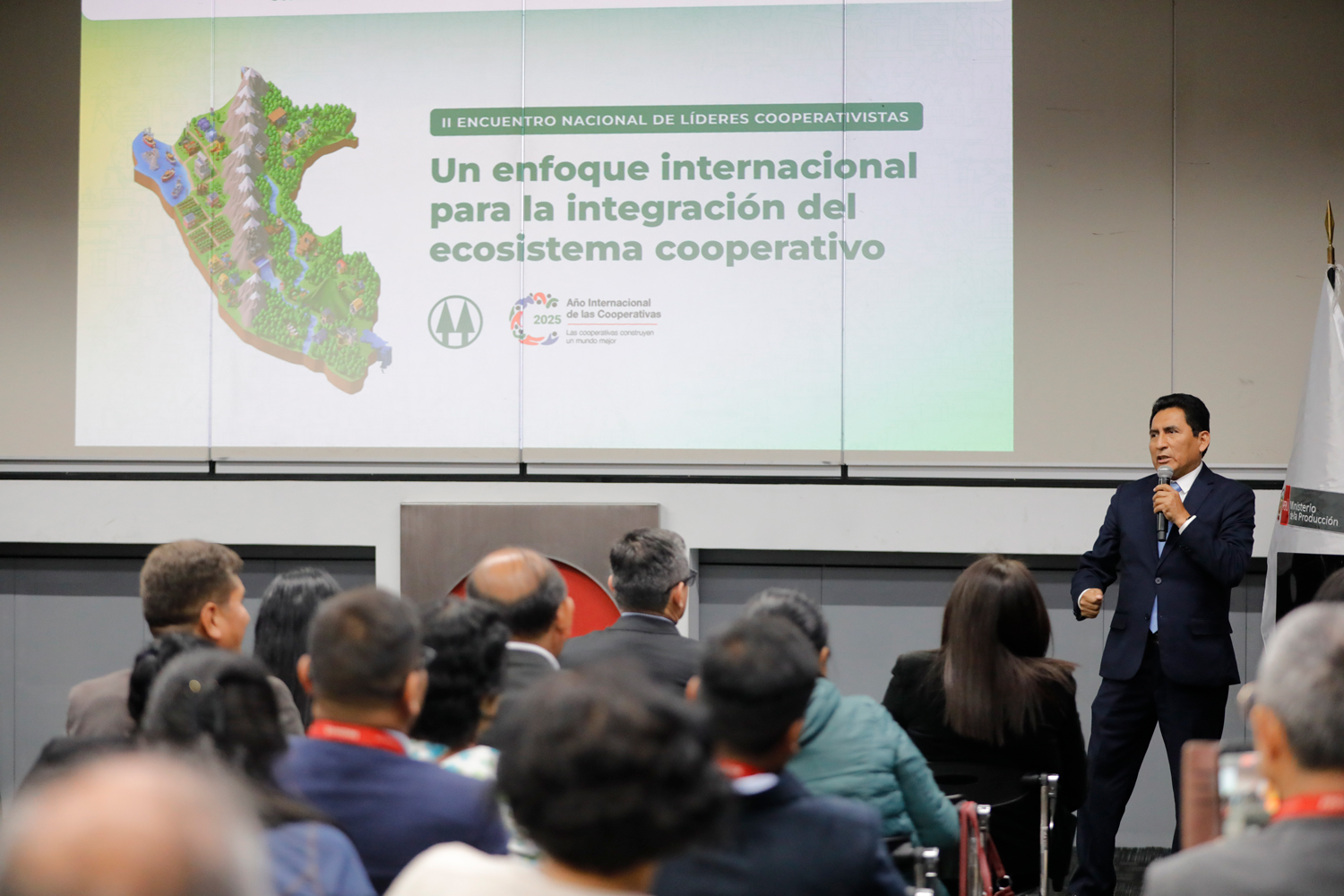 El evento, organizado por el Ministerio de la Producción (PRODUCE), tuvo como eje central “Un enfoque internacional para la integración del ecosistema cooperativo”, y reunió a líderes cooperativistas, representantes institucionales y especialistas del sector, quienes analizaron los principales retos y oportunidades del cooperativismo en el contexto nacional e internacional.